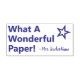Ce design encourageant de timbres en caoutchouc comprend le message encourageant "What A Wonderful Paper!" et le nom d'un enseignant sur mesure. Il présente également un contour décoratif étoilé. Il pourrait être utilisé par un enseignant, un éducateur, un instructeur ou un tuteur pour marquer les affectations, pour reconnaître qu'un étudiant a bien fait.