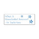Ce design inspirant d'estampille en caoutchouc comprend le message de motivation "What A Wonderful Answer!" et le nom d'un enseignant, d'un éducateur ou d'un tuteur customisé. Il présente également un contour décoratif étoilé. Il pourrait être utilisé par un enseignant, un éducateur ou un tuteur pour évaluer le travail des étudiants, pour indiquer qu'un étudiant a fait un travail exceptionnel.