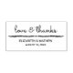 Ce beau tampon en caoutchouc représentant une vigne avec un cœur soulignant les mots "amour & remerciements" dans un style de police de calligraphie moderne et des détails dans un style de police sans empattement moderne.