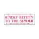 Cette conception respectable d'estampille en caoutchouc comporte le message "RETOUR KINDLY À L'ENVOI". Il pourrait peut-être être utilisé pour indiquer que le courrier reçu a été livré à la mauvaise adresse et devrait être retourné à l'expéditeur.