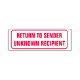 Cette conception d'estampille en caoutchouc comporte les messages "RETOUR À L'ENVOI" et "RECEVANT INCONNU" dans un contour rectangulaire.