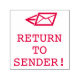 Cette conception respectable d'estampille en caoutchouc comporte le message "RETOURNER À SENDER!", ainsi qu'un symbole de flèche. Il pourrait peut-être être utilisé pour indiquer que le courrier reçu a été livré à la mauvaise adresse ou à un destinataire inconnu, et devrait être retourné à l'expéditeur.
