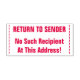 Ce cachet en caoutchouc comprend le message "RETOUR À L'ENVOI" et le message "Aucun destinataire à cette adresse!". Il peut être utilisé lors du retour de courrier envoyé à un destinataire inconnu.