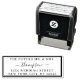 Problème de casse au transport, immédiatement re-fabriqué et livré en un temps record ! Principe technique du tampon standard efficace. Grace aux motifs "logo"proposés (d'un graphisme relativement simple mais efficace) et des choix perso' des polices et d'agencement dans la composition du tampon, la création est presque infini, du plus classique au plus insolite... Impossible donc de ne pas avoir "son" tampon bien personnel ! Impression parfaite sans "tache parasite". Très bonne finesse de détails...