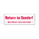 Cette simple estampille en caoutchouc comprend les messages "Retourner à l'expéditeur!" et "~ RECIPIENT A MOUVÉ ~". Il pourrait être utilisé pour indiquer que le courrier reçu a été livré à la mauvaise adresse et devrait être retourné à l'expéditeur.