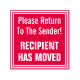 Cette conception de base de timbres en caoutchouc comprend les messages "Please Return To The Sender!" et "RECIPIENT has MOVED". Il pourrait être utilisé pour indiquer que le courrier reçu peut avoir été mal adressé et devrait être retourné à l'expéditeur.