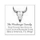 Ce timbre d'adresse de retour de style rustique ferme présente une illustration dessinée à la main d'un crâne de taureau. Personnalisez avec votre nom de famille et votre adresse de retour