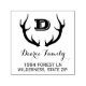 Faites votre propre nom de famille de cerfs rustiques populaire nom de famille retour adresse cachet en caoutchouc- Nom de famille personnalisé (ou nom complet) sur la première ligne dans un script élégant avec adresse de retour ci-dessous en police facile à lire. Le dessus est orné de bois de cerf noir, qui encadrent une lettre monogramme en noir. Un pays rustique parfait, un timbre en caoutchouc personnalisé pour les chasseurs de cerfs ou pour ceux qui vivent dans un cabine en bois ou souhaitent qu'ils le fassent. Serait également un grand cadeau rustique mariage personnalisé pour la mariée et le marié ou le tampon caoutchouc pour les enveloppes monogrammées et rustiques faire-part de mariage.
