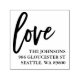Timbre en caoutchouc personnalisable avec script écrit à la main "love". Un accent parfait pour les papeteries et les étiquettes cadeaux.