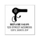 Silhouette Illustration du sèche-cheveux et du texte personnalisé pour le nom et l'adresse du salon.