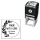 Fabriqué avec un timbre d'amour auto-encre avec une feuille de baies simplement dessinée. Donnez à vos produits faits à la main ou à la maison une touche personnelle avec ce timbre personnalisé fait d'amour auto-encre avec votre nom à l'intérieur d'une couronne de baies.