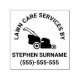 Design de timbre d'une silhouette de tondeuse à gazon et zones de texte modifiables. Parfait pour les paysagistes, les préposés à la pelouse ou les jardiniers pour ajouter une touche personnelle aux factures, aux notes ou à l'emballage. Ajoutez votre nom d'entreprise, votre numéro de contact ou un court message comme "Lawn Care Services by [Your Name]". Idéal pour faire la marque de vos services avec un look propre et professionnel.