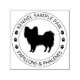 Le design original de Destei en silhouette d'un adorable chien de race Papillon. Il y a deux zones de texte personnalisables et des empreintes de pattes de chiens encadrent la silhouette du chien.
