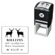 Timbre d'adresse rustique avec une paire de dollars de cerfs, votre nom en gros caractères gras, et votre code postal entre la fin et le point d'une flèche.