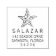 Le design élégant et personnalisé de l'estampille auto-encastrée comprend une illustration d'étoiles de mer avec un nom moderne et un texte d'adresse de retour.