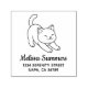 Cute cartoon illustration of a white cat having a good stretch. Customizable text.