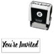 Élégant timbre en caoutchouc "You're Invited" - Utilisation comme touche finale sur les enveloppes d'invitation. Lit 'You're Invited' en regard manuscrit, des lettres de script. Parfait pour toutes les occasions spéciales - fête d'anniversaire, mariage, baby shower, fête de la retraite, douche nuptiale, fête du ménage, etc.