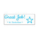 Ce design inspirant d'estampille en caoutchouc comprend le message de retour inspirant "Great Job!" et le nom d'un tuteur personnalisé. Il dispose également d'une icône décorative en forme d'étoile. Il pourrait être utilisé par un enseignant, un éducateur ou un tuteur pour marquer les affectations, pour indiquer que l'étudiant a fait un excellent travail.