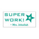 Cette conception motivante de timbres en caoutchouc comprend le message motivant "SUPER TRAVAIL!" et un nom d'enseignant personnalisé. Il présente également un contour décoratif étoilé. Il pourrait être utilisé par un enseignant ou un éducateur pour marquer les affectations, pour reconnaître que l'étudiant a fait un excellent travail.