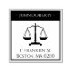 Timbre avec écailles de symbole de justice et adresse de retour.