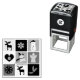 Problème de casse au transport, immédiatement re-fabriqué et livré en un temps record ! Principe technique du tampon standard efficace. Grace aux motifs "logo"proposés (d'un graphisme relativement simple mais efficace) et des choix perso' des polices et d'agencement dans la composition du tampon, la création est presque infini, du plus classique au plus insolite... Impossible donc de ne pas avoir "son" tampon bien personnel ! Impression parfaite sans "tache parasite". Très bonne finesse de détails...
