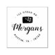 Feuilles d'Elderflower sur un rectangle sombre avec votre nom de famille en police manuscrite au milieu avec l'adresse ci-dessous et au-dessus en demi-cercle