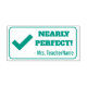 Ce modèle de tampon en caoutchouc motivant comporte le message motivant "PRESQUE PARFAIT !" et le nom personnalisé d'un enseignant ou d'un éducateur. Il comporte également une coche décorative. Il peut être utilisé par un enseignant, un éducateur, un instructeur ou un tuteur lors de la notation des devoirs, pour indiquer que l'élève a fait un excellent travail.