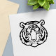 Beautiful minimalistic abstract vector art of a tiger head facing forward in black and white.