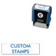 Imprimé sur mesure 1,4 po x 0,4 po BLUE INK (9 OPTIONS DE COULEUR) AUTO-INKING RUBBER STAMP (TRODAT PRINTY 4911) Modèle vierge - avec boîtier en surbrillance BLUE assorti; options de couleur de boîtier : Noir, Rouge, Bleu, Fuchsia Rose, Vert, Blanc ou Gris. Concevez, créez, créez les vôtres. Votre image, texte imprimé à partir d'encres et de matériaux de tampons de haute qualité pour une impression nette, nette et claire à chaque fois, avec jusqu'à 10 000 impressions avec chaque cartouche à partir de cartouches d'encre facilement changeables. Grip sécurisé pour éviter le contact entre les doigts et l'encre. Procédés de fabrication éco-compatibles. Les timbres auto-encastrés sont disponibles en six tailles et de nombreuses couleurs d'encre. Le meilleur pour l'utilisation au bureau, l'étiquetage des adresses et "Retourner à l'expéditeur", pour les monogrammes, et pour les images, les souhaits et les messages de Noël.