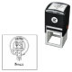 Problème de casse au transport, immédiatement re-fabriqué et livré en un temps record ! Principe technique du tampon standard efficace. Grace aux motifs "logo"proposés (d'un graphisme relativement simple mais efficace) et des choix perso' des polices et d'agencement dans la composition du tampon, la création est presque infini, du plus classique au plus insolite... Impossible donc de ne pas avoir "son" tampon bien personnel ! Impression parfaite sans "tache parasite". Très bonne finesse de détails...