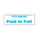 Cette conception simple et simple d'estampille comporte les messages "Payé en entier" et une ligne où une date de paiement peut être écrite. On pourrait peut-être l'utiliser pour indiquer qu'une facture ou une facture a été payée.