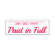 Cette conception minimale d'estampille en caoutchouc comprend les messages "Payé en entier" et une ligne où une date de paiement peut être écrite. On pourrait peut-être l'utiliser pour indiquer qu'une facture ou une facture a été entièrement payée.