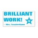 Cette conception motivante de timbres en caoutchouc comprend le message de rétroaction positive "BRILLIANT WORK!" et un nom d'éducateur customisé. Il dispose également d'une icône décorative en forme d'étoile. Il pourrait être utilisé par un enseignant ou un éducateur de l'école pour évaluer le travail des élèves, pour reconnaître qu'un étudiant a fait un travail exceptionnel.
