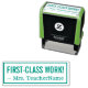 Tampon Auto-encreur "TRAVAIL DE PREMIÈRE CLASSE !" + Nom de l'enseigna
