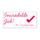 Cette conception motivante de timbres en caoutchouc comprend le message de rétroaction encourageant "Incroyable emploi!" et le nom d'un enseignant, d'un éducateur ou d'un tuteur personnalisé. Il est également doté d'une coche décorative. Il pourrait être utilisé par un enseignant, un éducateur, un instructeur ou un tuteur lorsqu'il s'agit de marquer les affectations, pour reconnaître qu'un élève a bien fait.