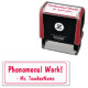 Ce design inspirant de timbres en caoutchouc comporte le message de louange "Travail Phénoménal !" et le nom d'un enseignant ou d'un éducateur sur mesure. Il pourrait être utilisé par un enseignant ou un éducateur de l'école pour évaluer le travail des élèves, pour reconnaître qu'un étudiant a fait un travail exceptionnel.