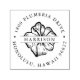 Ajoutez du charme estampillé à toutes vos envies avec notre timbre d'adresse de retour à fleurs tropicales, avec une illustration de silhouette de fleurs d'hibiscus entourée de votre adresse de retour. Personnalisez avec votre nom de famille sur la fleur.