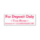 Cette conception élégante de timbres en caoutchouc comprend le message "Pour dépôt seulement", ainsi qu'un nom personnel/entreprise personnalisable et le numéro de compte. Il pourrait être utilisé par un propriétaire de petite entreprise, un commis de bureau ou un particulier pour ajouter efficacement une approbation restrictive à un chèque.