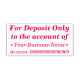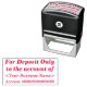 Ce tampon de base comporte le message "Pour dépôt uniquement au compte de", ainsi qu'un nom et un numéro de compte personnalisables. Il pourrait être utilisé par un comptable, un commis ou un commis aux finances pour ajouter efficacement une note restrictive à un chèque.