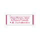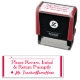 Cette estampille en caoutchouc clair comporte le message "Veuillez réviser, initial et retour rapidement", en plus d'une ligne qui indique qu'une signature ou des initiales peuvent être écrites ci-dessus. Il comporte également un nom d'éducateur ou de tuteur personnalisé. Il peut être utilisé par un éducateur, un tuteur ou un enseignant pour demander aux parents ou aux tuteurs d’un élève de revoir et de reconnaître la note reçue par un étudiant lors d’un essai, d’un test, d’un quiz, d’un examen ou d’une autre affectation scolaire.