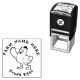 Problème de casse au transport, immédiatement re-fabriqué et livré en un temps record ! Principe technique du tampon standard efficace. Grace aux motifs "logo"proposés (d'un graphisme relativement simple mais efficace) et des choix perso' des polices et d'agencement dans la composition du tampon, la création est presque infini, du plus classique au plus insolite... Impossible donc de ne pas avoir "son" tampon bien personnel ! Impression parfaite sans "tache parasite". Très bonne finesse de détails...