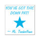 Ce design inspirant d’estampille en caoutchouc comprend le message "VOUS AVEZ CE PAT BAS!" et le nom d’un enseignant ou d’un éducateur sur mesure. Il est également décoré en étoile. Il pourrait être utilisé par un enseignant, un éducateur ou un tuteur pour évaluer le travail des élèves, afin de reconnaître qu'un étudiant a fait un travail exceptionnel.