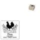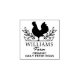 Ce timbre en caoutchouc "Oeuf Stamp" présente un poulet avec un nom et un slogan personnalisés.