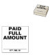 Cette conception simple et en caoutchouc comprend les messages "MONTANT PAIÉ COMPLET" et une ligne où une date de paiement peut être écrite. On pourrait peut-être l'utiliser pour indiquer qu'une facture ou une facture a été entièrement payée.