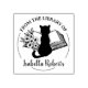Ce tampon encreur "De la bibliothèque de" comporte un livre, des fleurs, un chat et un nom personnalisé.