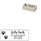 Tampon encreur d'adresse de retour personnalisé empreinte de patte de chat pour une maman chat, propriétaire de chat et tous les amoureux des animaux. Décoré avec une paire d'empreintes de pattes stylisées et associé à un nom en écriture cursive jolie avec une belle impression d'adresse. Montrez votre amour pour les chats et embellissez votre correspondance avec ce petit tampon encreur d'empreinte de patte personnalisé amusant.
