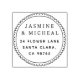 Un joli timbre en bois d'adresse de retour avec une bordure ronde dessinée à la main. Le cadre fantaisiste à pétoncles entoure le texte - les noms du couple dans les chapiteaux serif, et leur adresse de retour en caractères gras ci-dessous. Cette conception peut être modifiée pour présenter deux noms, un nom de famille, un nom individuel ou un nom commercial. Idéal pour les invitations de fêtes, cartes de voeux, merci, cadeaux, et plus encore. Il s'agit de l'estampille en bois - choisissez les options de poignée et de pavé d'encre selon votre préférence! Une version autocollante de ce timbre est disponible dans mon magasin. Visitez mon magasin pour plus de modèles de timbres d'adresse de retour.