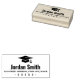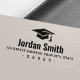 Timbre d'adresse de retour avec un capuchon de graduation avec votre nom dans une police sans serif en gras et l'adresse ci-dessous sur un arrière - plan de couleur blanc ou personnalisé.
