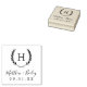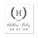 Créez un timbre pour mariage monogrammé pour personnaliser les faveurs, les sacs de bienvenue ou la papeterie. Personnalisez le modèle avec les noms de la mariée et du marié ou les initiales monographiques. Ajoutez votre date de mariage, le nom de la ville, de l'état ou du lieu ou tout autre texte personnalisé. Ce design rustique moderne de style logo a un cadre de branche de laurier avec votre initiale monogramme. Utilisez les outils de conception pour ajouter du texte ou modifier les polices et la mise en page.