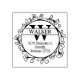 Ce timbre en caoutchouc est muni d'un monogramme, d'un nom de famille et d'une adresse à cadre floral.